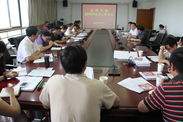 会上,郭华副校长首先对我校2013年征兵工作的总体情况进行了通报,对去年征兵工作取得的成绩给予了肯定。接着传达了5月14日上午召开的2014年度全国大学生征兵工作网络视频会议及云南省大学生征兵工作会议精神。指出依法做好征兵工作,是加强部队建设、巩固国防的一项重要任务,是全社会的共同责任,学校各单位要充分认识做好大学生应征入伍工作的重要意义,要严格按照中央和省里的要求,按照今年征兵工作的各时间节点,做好大学生应征入伍的宣传动员、咨询服务、网上报名等各项工作。