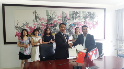 5月19日下午,尼泊尔国际快速有限公司总裁Milan Gyawali 先生及其助理Prem Raj Dahal先生再次访问我校并与我校签订合作协议,副校长李翔出席签约仪式,国际交流合作处处长王文君、旅游学院副院长田芙蓉及有关人员参加,双方就合作项目的具体事宜进行了深入商谈。