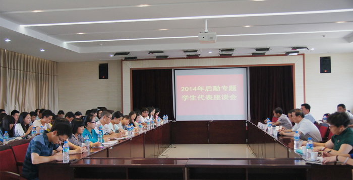 4月25日下午, “2014年后勤专题学生代表座谈会”在办公楼502会议室举行,各院系学生代表、学生生活权益部全体同学、张寿国副校长、后勤集团领导班子及科级干部共计80多人参加了本次会议,座谈会由后勤集团总经理冯坚主持。