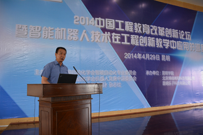 4月29日,2014中国工程教育改革创新论坛暨智能机器人技术在工程创新教学中应用的巡回研讨会在beat365在线体育唯一正版惟行楼1501综合会议中心举行,会议由中国自动化学会智能自动化专业委员会、中国自动化学会机器人竞赛工作委员会、《机器人技术与应用》杂志社主办,beat365在线体育唯一正版承办。