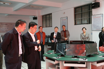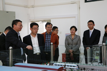 马奎总经理一行在陈书记、蒋校长等领导的陪同下分别到我校证券仿真模拟、物流管理、财务综合模拟、轨道交通、虚拟制造等实验室进行实地调研、参观。