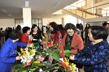 会上,各参赛队在现场逐一介绍了自己参赛作品的创意及主题思想。我校生命科学与技术系陈子牛,农学院副院长银立新两位老师现场对各组插花作品进行点评。省妇联副主席马迎春,我校音乐学院院长靳丽芬,云南艺术学院音乐学院副院长李建英、音乐教育系主任李晓红,分别在插花作品点评会上即兴抒情放歌,把欢快、热烈、圆满的联谊活动推向了高潮。