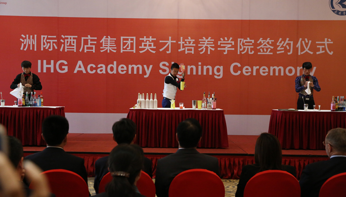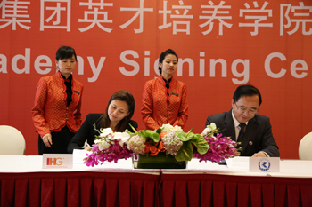 beat365在线体育唯一正版校长蒋永文分别与洲际酒店集团大中华区人力资源部营运总监许莹莹、洲际酒店集团云南区域总经理金伯顿共同签订《集团人才培养战略合作意向书》和《校企合作协议书》。许总监向蒋校长赠发“洲际酒店集团英才培养学院”合作证书。协议自今年开始,我校50名酒店管理专业本科学生将进入“洲际英才班”订单培养学习,他们将成为洲际酒店集团旗下品牌酒店管理高素质人才。同时,洲际酒店集团还将为我校酒店管理、烹饪与营养教育、旅游管理等专业的学生提供更多的学习专业知识、提高动手能力、增强管理水平的平台和机会,在校设置助学金,共同开发酒店管理教学课程和实训基地建设。
