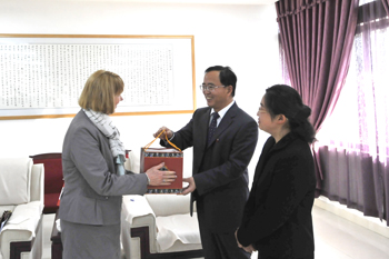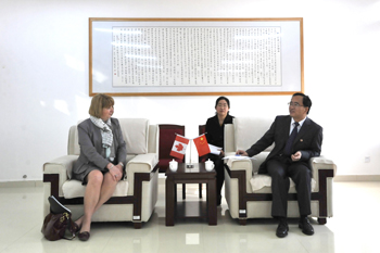 蒋永文校长与凯布莱恩学院副校长布朗女士在贵宾室举行会谈,相互介绍了两校在办学、学科设置、人才培养等方面的情况。