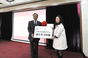 最后,蒋永文校长向廖忠博士颁发“中加学前教育中心顾问”聘书,向金果幼儿园颁发“中加学前教育中心教学实习基地”牌匾。