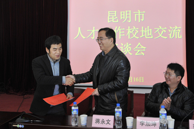 1月16日,昆明市人才工作校地交流座谈会在我校办公楼502会议室举行。此次座谈会是继1月6日中央组织部、共青团中央第14批赴滇博士服务团到访我校之后的合作座谈会。