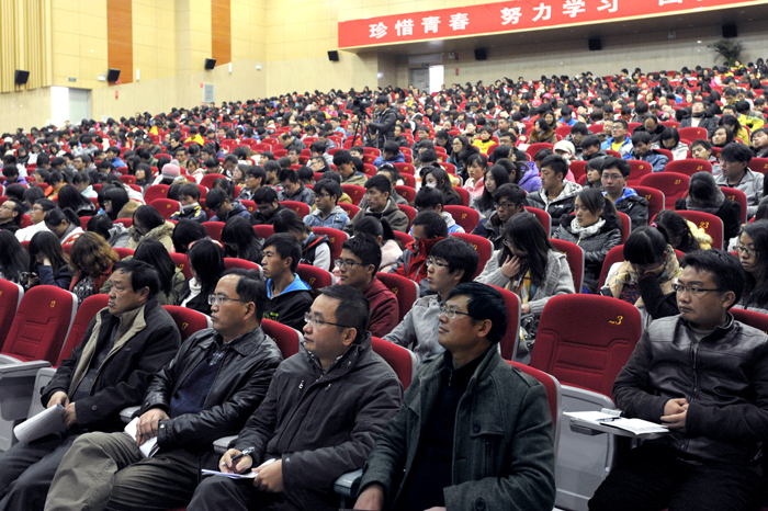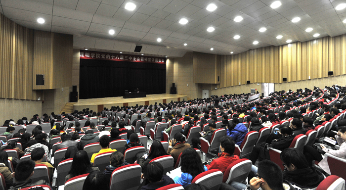 12月20日下午,beat365在线体育唯一正版在学生会堂举行党的十八届三中全会精神宣讲报告会。省委十八大精神宣讲团成员、省委高校工委十八届三中全会精神宣讲团成员、云南大学副校长杨泽宇教授做了专题报告。学校校长蒋永文、党委副书记孙勇、各党总支副书记、管理服务部门教职工党员、各院系师生党员代表共1200多人聆听了报告。报告会由孙勇副书记主持。