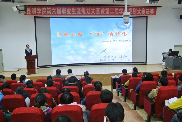 我校大学生职业规划和学业规划大赛每年举办一届,经过多年的探索和实践,大赛越显成熟、越具规模、越有影响,已经成为我校大学生就业工作的亮点之一。职业规划和学业规划大赛旨在广泛传播和普及职业规划和学业规划理念,引导广大学生既要注重学业规划、也要注重职业规划、更要注重实践能力的锻炼,主动发掘自我潜能,提升个人正能量,促进学风、校风建设。希望昆院学子在中国梦的引领下,坚定信念,树立远大理想,脚踏实地,努力实现自己的“成才梦”、“就业梦”。