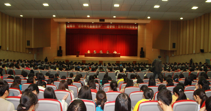 学习道德模范,传递道德能量。12月6日,昆明市“道德模范基层巡讲”在我校成功举行。昆明市文明办副主任王文萍,我校党委副书记李媛芬出席报告会并讲话,我校1300名师生到会聆听。报告会由我校团委书记何昊宸主持。