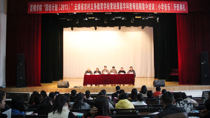 11月11日,“国培计划”(2013)云南省农村义务教育学校紧缺薄弱学科教师短期集中培训项目小学音乐教师培训班在我校开班。开班典礼在音乐楼音乐实践教室举行,学校副校长刘海发,继续教育学院院长陈嘉、副院长张培宏,音乐学院党总支书记闻欣、院长靳丽芬、副院长黄清林及相关管理服务人员,与来自我省14个市(州)的49名小学音乐教师参加开班典礼。开班典礼由音乐学院院长靳丽芬教授主持。