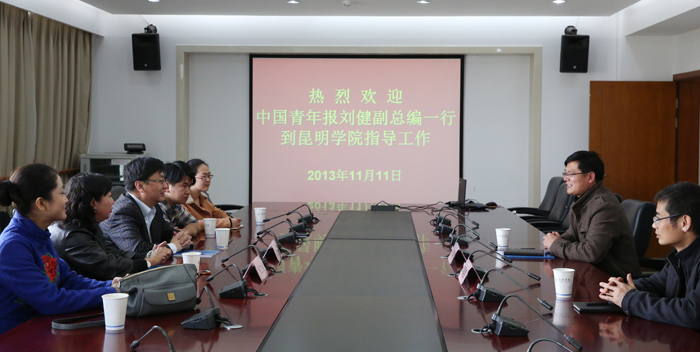 11月11日,中国青年报副总编刘健率中国青年报驻云南记者站站长张文凌一行5人到我校调研指导工作。按照学校领导安排,党委宣传部、团委热情接待,并进行座谈交流。