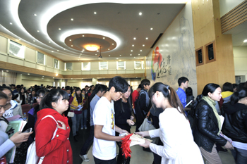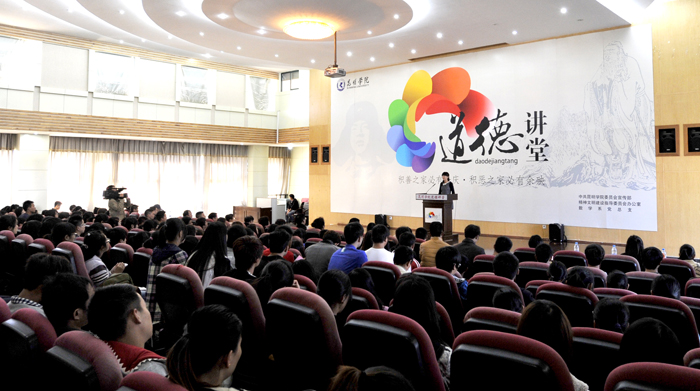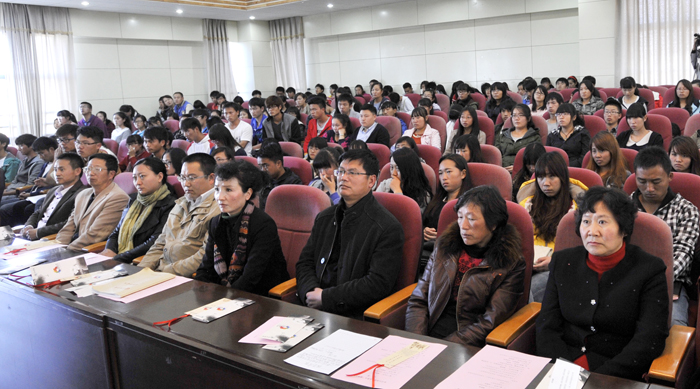 11月21日下午,由党委宣传部、校文明办、数学系党总支共同举办的“读好书,做好人——付贵帅舍己救人‘道德讲堂’”在惟行楼1501开讲。学校党委副书记李媛芬,各教学院系党总支副书记、团总支书记、团学干部代表共300余人到场聆听我校数学系学生付贵帅舍己救人,为营救不慎落水的伙伴献出自己年仅20岁年轻生命的故事。
