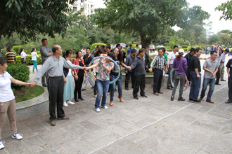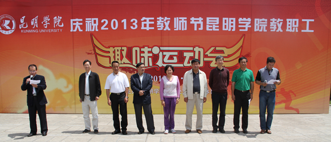 为庆祝第二十九个教师节,学校人事处、工会、体育学院于9月10日下午在聂耳广场联合举办2013年教师节教职工趣味运动会。学校党委副书记孙勇、李媛芬、副校长李翔、张寿国、刘海发、董建华等出席运动会开幕式。人事处处长杨斌主持开幕式,校工会常务副主席孙晓坤就运动会的内容做了简要说明,体育学院院长赵平宣布运动会开始。
