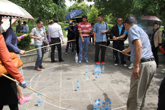各院系工会会员代表进行了包装木乃伊接力、呼啦圈过山车、齐心协力•珠行万里、心心相应•车轮滚滚、过板抽桥等集体项目比赛和一分钟反向跳绳、30秒扑克牌飞准、摸石头过河、企鹅漫步、小猫钓鱼、蒙眼敲锣、夹玻璃球、乒乓球掷准等个人项目比赛。