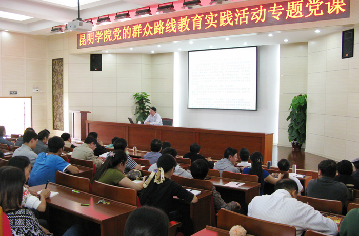 根据省委党的群众路线教育实践活动有关要求,结合我校当前党员教育实际,学校党委书记陈世波于9月12日下午在办公楼D区报告厅为师生党员上“党的群众路线教育实践活动专题党课”。校党委委员、副校长熊晶等学校领导以及各党总支直属支部书记、机关党员干部、各院系师生党员代表共计190余人参加听党课。