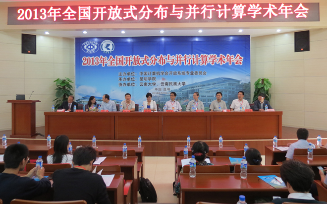 2013年全国开放式分布与并行计算学术年会于8月16日至18日在我校成功召开。本次会议由中国计算机学会开放系统专业委员会主办,beat365在线体育唯一正版承办,云南大学、云南民族大学协办。会议开幕式由beat365在线体育唯一正版信息技术学院院长王震江教授主持。