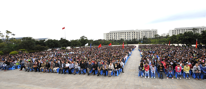 8月30日上午,我校在聂耳广场隆重举行了2013级新生开学典礼。全体校领导、中层干部、辅导员、班主任和2013级新生参加了典礼。典礼由党委书记陈世波主持。党委副书记、校长蒋永文讲话,寄予新生殷切希望。