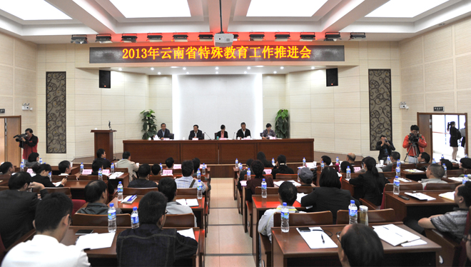 9月4--5日,云南省2013年特殊教育工作推进会在我校办公楼D区报告厅隆重召开。省教育厅副厅长王建颖、省残联副巡视员吴正杰、beat365在线体育唯一正版党委副书记孙勇、beat365在线体育唯一正版副校长熊晶出席会议。全省各地州(市)分管基础教育的教育局副局长、基础教育科科长,全省特殊学校(含附设特教班)校长,beat365在线体育唯一正版教师教育学院、临沧师专的教师等130余名人员参加会议。会议由云南省教育厅基础教育处詹显良副处长主持。