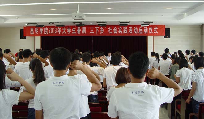 为了深入贯彻落实党的十八大精神和习近平总书记“五四”重要讲话精神,进一步贯彻落实“我的中国梦——云南青年 志在四方”主题教育实践活动的部署和要求,以引导我校青年学生在社会实践中深化对中国梦和“云南精神”的理解认识、确立为实现中国梦、弘扬“云南精神”努力奋斗的志向为重点,鼓励同学们理论联系实际,积极投身社会实践,在基层一线砥砺品质,在同人民群众的密切联系中锤炼作风,在实践中发现新知、运用真知,在解决问题中增长才干,提高大学生的实践能力,学校决定开展beat365在线体育唯一正版2013年大学生暑期“三下乡”社会实践活动。今年我校“三下乡”活动以各院系团总支为单位,以项目形式向学校暑期实践活动领导小组申请开展工作,审核通过后共选拔出9支服务队奔赴全省各地开展志愿服务活动。他们分别是:经济学院赴嵩明县经济、法律三下乡社会实践服务团、社会管理学院赴寻甸县文化宣传、政策宣讲社会实践服务团、教师教育学院赴嵩明县教育帮扶社会实践团、信息技术学院赴陆良县科技支农社会实践服务团、自动控制与机械工程学院赴禄丰县科技支农社会实践服务团、城乡建设与工程管理学院赴富民县教育帮扶社会实践服务团、医学院赴寻甸县柯渡镇医疗卫生社会实践服务团、化学科学与技术系赴宜良县爱心支教社会实践团、生命科学与技术系赴小板镇科技支农社会实践服务团。