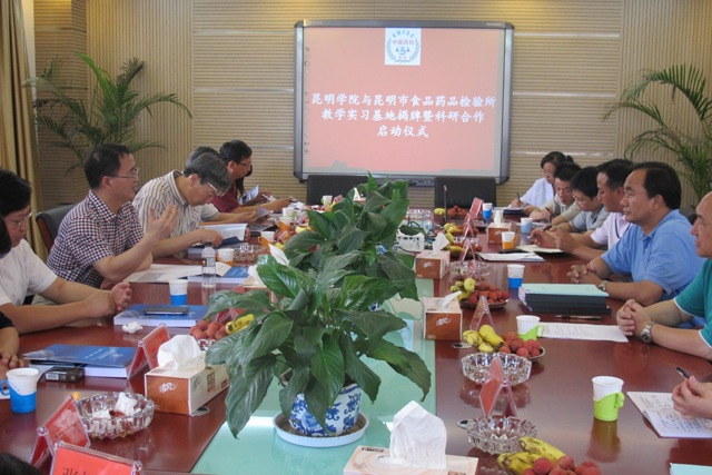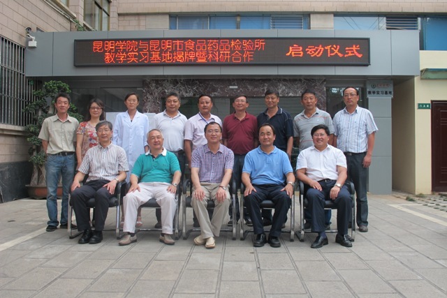 6月21日下午,beat365在线体育唯一正版与昆明市食品药品检验所教学实习基地揭牌暨科研合作启动仪式在昆明市食品药品检验所举行。beat365在线体育唯一正版校长蒋永文,副校长罗明东、董建华出席。昆明市食品药品监督管理局局长杨柱,副局长李勤裕,昆明市食品药品检验所所长曾剑平,beat365在线体育唯一正版教务处处长沈凡,招就处处长包兴,化学科学与技术系主任马银海等参加仪式。