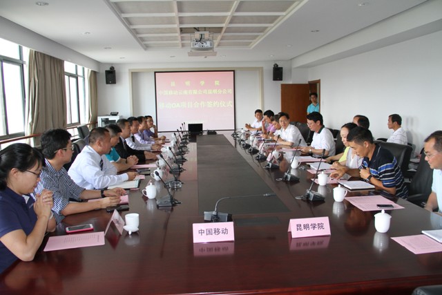 6月19日下午,学校与中国移动云南有限公司昆明分公司举行了移动OA项目合作签约仪式。学校党委书记陈世波、校长蒋永文、相关职能部门负责人,中国移动云南有限公司副总经理黄振旺、昆明分公司相关领导及项目负责人、业务主管等参加了签约仪式。仪式由学校副校长刘海发主持。