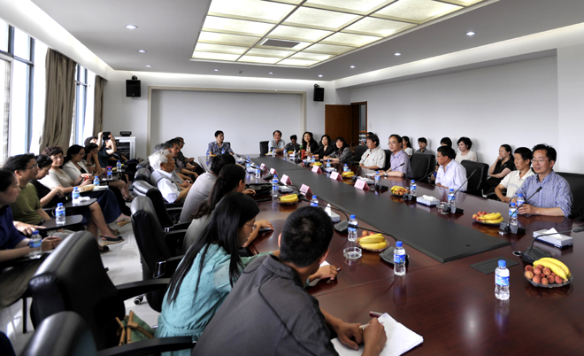 参观结束后,蒋校长、熊副校长及相关部门领导、师生分别在办公楼3楼会议室与教授们进行座谈,听取来宾对我校建设发展的意见和建议。人文学院院长詹七一、昆明滇池(湖泊)污染防治合作研究中心办公室主任钱春萍、昆明科学发展研究院副主任黄继元,首先向各位教授介绍了我校相关工作情况。在听取介绍后,5位教授结合自己多年来的办学、治学经验,对我校相关学科专业建设和科学研究提出了宝贵的意见和建议。