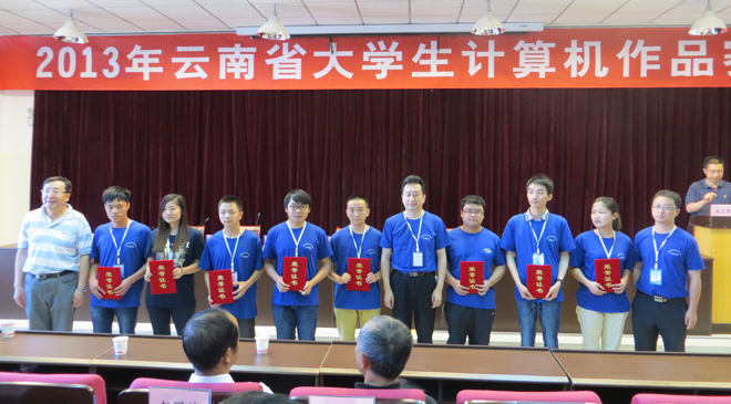 由云南省教育厅主办、云南省计算机学会和大理学院共同承办的“2013年云南省大学生计算机作品赛”于 6月1日在大理学院落下帷幕。这次竞赛来自省内27所高校的54支参赛队展开了激烈角逐。最终产生特等奖2个、一等奖4个、二等奖8个,三等奖10个和优秀奖30个。