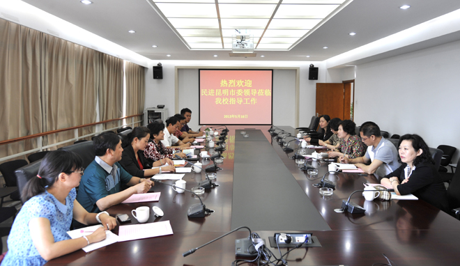 5月16日上午,昆明市政协副主席、民进昆明市委主委汪叶菊,民进昆明市委副调研员王强、秘书长余平、组织处处长李进、宣传处副处长曾毅一行莅临我校,就我校民进总支换届事宜进行工作调研。我校党委副书记李媛芬、统战部部长沈中灿、民进beat365在线体育唯一正版总支主委王昆建、副主委博斌、张明霞参加调研会。