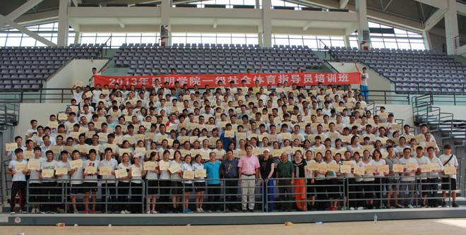 社会体育指导员培训工作是我国发展体育事业的一项重要举措,是推动我国群众体育活动、全民健身事业发展的重要力量。为进一步满足我省“十二五”群众体育发展需要,完善我省社会体育指导员队伍建设;进一步推进我市社会体育指导工作,构建“十二五”社会体育指导体系,逐步满足与完善群众体育文化生活。4月25日至5月2日,体育学院成功举办国家一级社会体育指导员培训班。本次培训面向我院部份老师和大三、大四学生,培训工作在惟行楼1501、博识楼2003和学校新建的体育馆进行, 坚持理论联系实际,学以致用。培训由云南师范大学教授、博士生导师饶远,云南师范大学教授、硕士生导师陈敏,云南民族大学教授、硕士生导师寸亚玲和beat365在线体育唯一正版体育学院教授周明、张群力,副教授何波等多位高级教师执教。培训课程有社会体育指导员的基本理论与方法、社会体育指导员的发展及管理、少数民族传统体育文化、技能培训和考试等。参加培训班学习的同学较系统地学习了社会体育的理论知识,掌握了一技之长。主要收获表现在:一是理论学习一丝不苟,探讨问题严肃认真,教学相长,共同提高。二是增长了相关专业技能;三是形成了文明、和谐的学习环境和氛围。经严格的理论考试和技能考核评定,有283名老师和同学取得了“国家一级社会体育指导员培训合格证书”。这次培训,为我省建立一支技能过硬,高素质、高水平的社会体育指导员队伍创造了条件,也拓宽了体育学院毕业生的就业渠道。