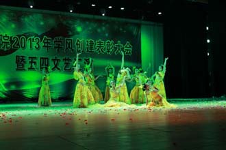 大会结束后,师生一同观看了有我院各班自导自演的精彩文艺演出。演出结束,孙副书记与各部门负责人走上舞台和演员们合影留念。