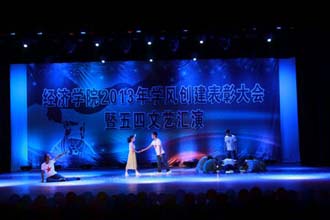 为进一步加强和改进经济学院学风建设,树立典型,表彰先进,营造良好的学习氛围,5月3日晚,经济学院在学生会堂隆重召开2013年度学风创建表彰大会。学校党委副书记孙勇、科研处处长王定康、招生就业处处长包兴、学生处副处长侯青妮、校团委副书记樊传章及经济学院师生参加大会,并观看了文艺汇演。大会由经济学院党总支书记施磊主持。