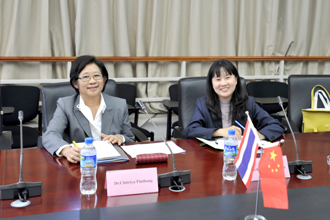 5月8日下午,泰国兰实大学外事副校长兼中泰合作交流处处长Dr. Chitriya Pinthong 及中泰合作交流处副处长Dr. Kanjanita Suchaoin 一行到我校访问。李翔副校长热情接待并与之会谈,国际交流合作处副处长陈静及相关工作人员参加会谈。双方就学生互换、短期实习、硕博联合培养等具体项目进行了讨论并达成共识。