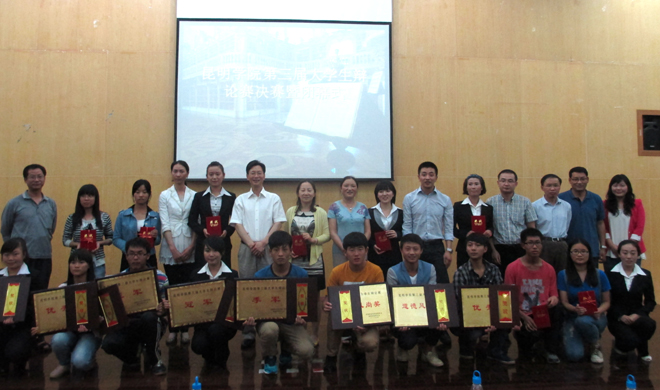 本届大学生辩论赛以“畅论中国梦,澎湃爱国情”为主题,18个院系代表队参加,历时一个月,经过小组赛、淘汰赛、半决赛、决赛共34场次的激烈角逐,社会管理学院代表队、人文学院代表队、外国语学院代表队和经济学院代表队脱颖而出,进入决赛。决赛共有两场比赛,分别是季军争夺赛和冠军争夺赛,首先登场的是社会管理学院代表队和人文学院代表队,他们就“国内城市房价走势将继续上涨还是下跌”的辩题争夺季军,接着由外国语学院代表队和经济学院代表队围绕“应不应该建设怒江梯级水电站”的辩题争夺冠军。比赛中,辩手们破题立论,角度新颖,思维灵活,不仅使得辩论现场精彩纷呈,也使到场聆听的同学们深受启发。特别在自由辩论阶段,辩手们引经据典,妙语连珠,多次把辩论赛推向高潮,赢得了场下观众的阵阵掌声。最后,蔡立老师和张宇丹老师分别做了精彩点评,既充分肯定了我校同学的创新思辩能力,也指出了同学们辩论赛过程中需要注意的问题。最终,外国语学院获冠军、经济学院获亚军、社会管理学院获得季军,经济学院曹萧宇同学被评为“最佳辩手”,社会管理学院张雅楠、外国语学院刘婧苹同学被评为“人气辩手”。