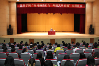 4月17日晚上,保卫处治安科科长张智益老师在学生会堂为各院(系)学生代表主讲了“大学生酗酒的危害”专题讲座。张老师通过分析省内外高校及我校近年来发生酗酒行为而导致严重后果的相关案例,指出了大学生酗酒的种种危害。最后张老师介绍和分析了当前昆明市及我校周边的治安形势,并希望同学们在以后的学习和生活中,对大学生酗酒的危害有足够的认识,从自身做起,带动周围的同学,树立良好的生活行为习惯,一起携手“拒绝酗酒行为 共建文明校园”。