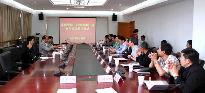 4月24日上午,我校与昆明市审计局合作协议签字仪式在办公楼311会议室举行。