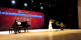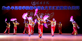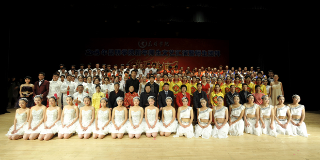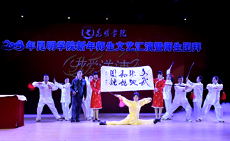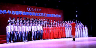 接下来的文艺演出上,由学校教职工,各院系学生以及学生社团联合会、大学生艺术团表演的节目精彩纷呈。大学生艺术团的舞蹈《新禧俏花灯》、我校留学生代表的歌舞表演《昆明欢迎你》、跆拳道协会表演的《胜之道》、教职工代表的乐器合奏《咆哮的风箱》、旅游学院带来的花样调酒《金蛇生瑞》等精彩的表演一次次将活动推向高潮,最后,节目在由美艺学院彭善秀教授作词、音乐学院李颖玲副教授作曲并指挥、音乐学院、教师教育学院、美艺学院学院学生共130人组成的大合唱《beat365在线体育唯一正版,我要为您图强》歌声中圆满落下帷幕。