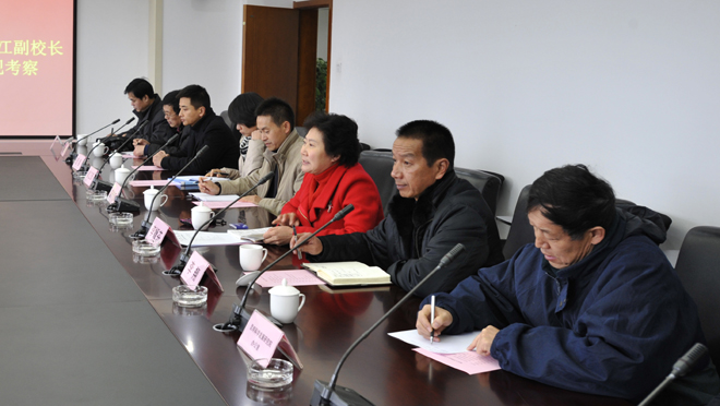我校党委副书记、纪委书记李媛芬,副校长李翔在办公楼会议室与来宾进行座谈交流。