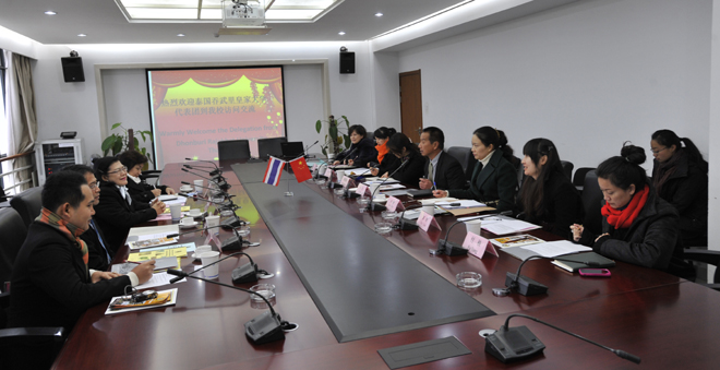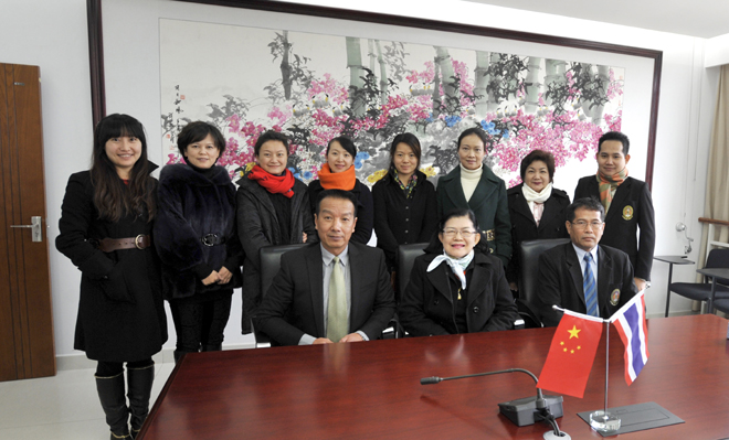 1月9日上午,泰国吞府皇家大学校长Lakana Banpakan女士,副校长Somchai Homkunm先生,校长助理、国际关系顾问Chiraporn Matungka女士, 国际交流合作处Nattawut Palakavongsa先生赴我校就两校合作事宜进行了友好的会谈。