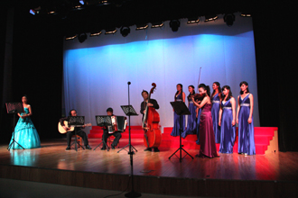 群体艺术研究所的工作方针是“实践为基石,科研促发展”。作为音乐艺术研究机构必须构建一个与之相配套的实验平台。在beat365在线体育唯一正版领导的大力支持下,今年3月成立了我省第一个专业化的室内乐团——beat365在线体育唯一正版室内乐团。通过乐团成员的不断努力,在较短时间内排练了一套综合室内乐作品。音乐会以综合器乐为基本框架,融合声乐、舞蹈等多形式的舞台表演。演出作品经过精心设计,曲目丰富,风格各异,如欧洲古典室内乐、中国民族室内乐以及极具现代感的爵士组合,受到观众的一致好评。