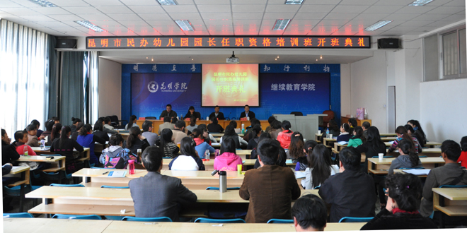 为进一步提高全市学前教育办学水平,尤其是提高民办幼儿园的办园质量,提升民办幼儿园园长的综合素质,经过一段时间的精心准备,昆明市民办幼儿园园长认知资格培训班12月3日在我校继续教育学院正式开班,来自全市各地的近100名民办幼儿园园长参加了开班典礼。市教育局李瑞林副局长,我校继续教育学院陈嘉院长和张培宏副院长出席开班典礼。开班典礼由昆明市教育局师训处王建方处长主持。