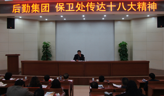 11月20日下午,张寿国副校长在办公楼D区三楼报告厅主持召开后勤集团、保卫处会议,专题传达学习党的十八大精神。两部门教职工及后勤食堂、超市负责人共170人参加了会议。