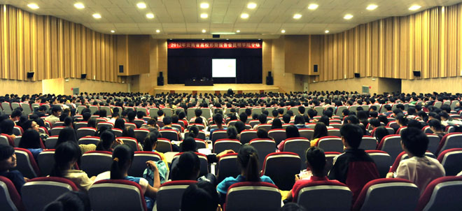 为加强高校形势政策教育,帮助学生认清国内外形势,教育引导学生全面准确理解党的路线、方针和政策,同时为党的十八大胜利召开营造良好氛围,根据中共云南省委高校工委的部署和安排,经学校研究决定,于10月26日下午在我校学生会堂举行主题为“时代主题与当代政治格局演变”的2012年云南省高校形势报告会。报告会特邀省委宣讲团成员、云南大学教授、博士生导师、法学博士任新民老师作专题宣讲。学校副校长刘海发出席并主持报告会,思想政治理论课教学科研部、社会管理学院全体教师及学生党员代表1300多人参加了报告会。