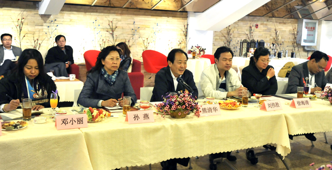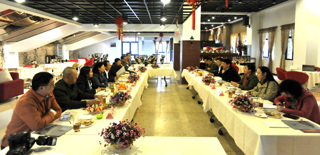 党办主任吉庆华,校办主任杨跃,经济学院党总支书记施磊、院长博斌,旅游学院党总支书记张士芬、院长窦志萍、副院长吴跃辉、田芙蓉等部门负责人陪同参观座谈。