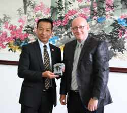 9月19日上午,国际艺术节委员会主席美国贝瀚文大学高级顾问科伦.哈滨逊博士访问我校,副校长李翔代表学校领导对科伦.哈滨逊博士一行的到来表示欢迎。音乐学院院长靳丽芬、国际交流合作处副处长陈静及相关工作人员参加了座谈。
