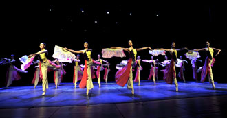 辽宁芭蕾舞团此次来昆的70余位演员为我校师生呈现了一场品味高雅、美轮美奂的芭蕾盛宴。演出在唯美浪漫的经典芭蕾舞剧《仙女》中盛妆启幕,演员们用精湛的舞技精彩演绎了中外芭蕾舞的经典与现代之作。现代男子群舞《男人》阳刚雄武、活力四射;古典芭蕾舞剧《海盗》生动唯美、激情奔放;现代女子群舞《茉莉花》优雅曼妙、赏心悦目;精选节目《芭蕾集锦》节奏明快、酣畅淋漓;情景芭蕾《江山美人》如歌如泣、激昂悲壮;现代二人舞《无欲无虑》动感协调、引人入胜;世界经典舞剧《天鹅湖》双人舞揭示了对生命,对爱情的无限憧憬;而中国芭蕾舞剧《二泉映月》中的经典桥段《梦中追月》成功的将听觉向视觉转化,实现了一次文化层面上的中西合璧,美不胜收、感人肺腑。整台演出精彩纷呈、高潮迭起,赢得了全场师生经久不息的热烈掌声。最后,演出在辽宁芭蕾舞团全体演员带来的原创作品《芭蕾风采》中徐徐落下帷幕。演出结束后,陈世波书记还亲切地与演员们合影留念。