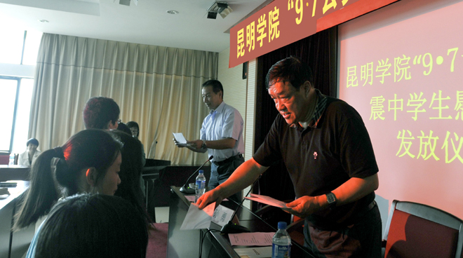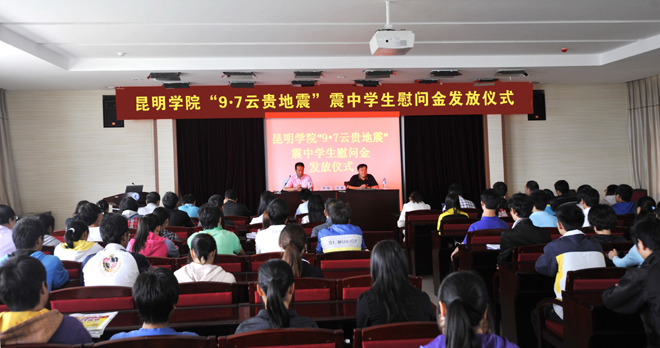 9月7日11时19分,云南省昭通市彝良县与贵州省毕节地区威宁彝族回族苗族自治县交界发生5.7级地震,灾情牵动了beat365在线体育唯一正版全体师生的心。学校党委、行政及时做出部署和向受灾学生发放慰问金的决定。学生处和各教学院系领导和辅导员深入灾区的学生中,了解其家庭受灾情况,并通过他们向其家人表达关切之情。此次地震共有177名同学家庭财产遭受不同程度的破坏,其中26名学生家里房屋倒塌。