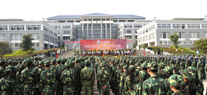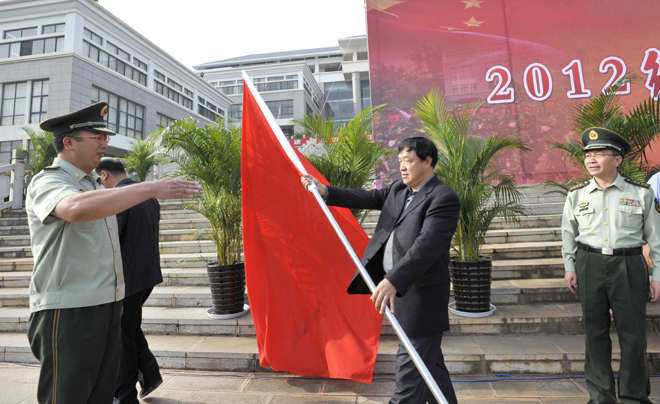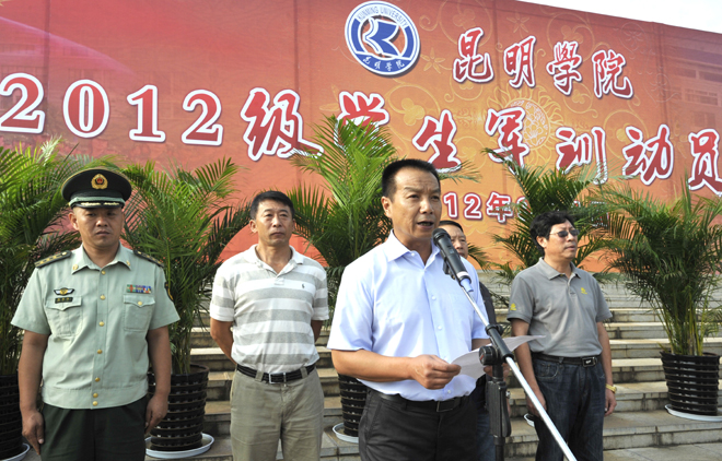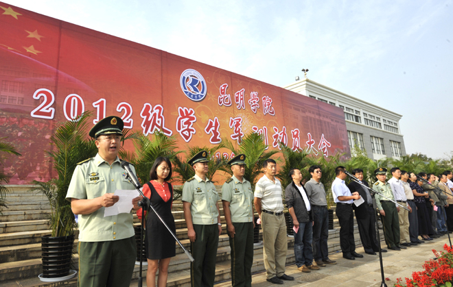 9月4日上午,我校2012级学生军训动员大会在聂耳广场举行。武警边防部队士官学校训练部部长李荣,学生军训团团长陈应海、副团长申仕兵,继续教育处处长孙利辉,信息技术系主任赵立志,学校党委副书记、国防教育委员会主任孙勇,副校长、国防教育委员会副主任李翔,学校国防教育委员会全体成员,各院(系)主管学生工作领导,带队辅导员、全体承训官兵和2012级4600余名参训同学参加了动员大会。大会由副校长李翔主持。