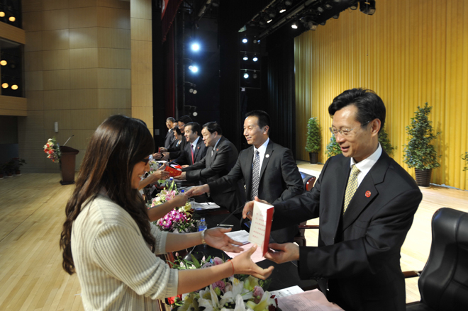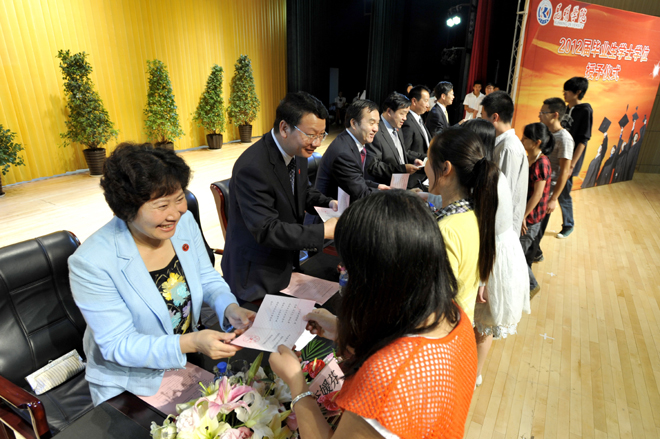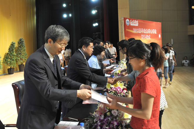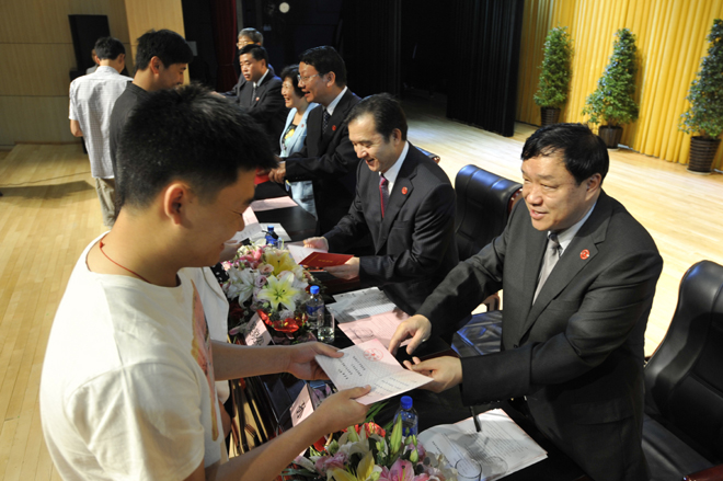 首先,李翔副校长宣读《beat365在线体育唯一正版关于对2011~2012学年省级三好学生、优秀学生干部、先进班集体进行表彰的决定》和《beat365在线体育唯一正版关于对2012届省级优秀毕业生、校级优秀毕业生进行表彰的决定》。76名省级三好学生、22名省级优秀学生干部、9个省级先进班集体;196名省级优秀毕业生,593名校级优秀毕业生受到了表彰和奖励。与会校领导分别为获奖个人和集体颁发荣誉证书。
