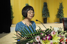 人文学院余雷教授代表教师作了《我将与你同航》的主题发言。她与同学们分享了自己成功的经验。她说,我的生命中一直燃亮着三盏灯,是它们的光芒和温暖让我的人生感到充实和幸福。今天,我把“理想之灯、热情之灯、勇敢之灯”作为临别的礼物送给你们。你们即将离别的这所学校会被你们称为母校,所有的人都是为了爱而相聚,只有孩子和母亲是为了爱而越走越远!我们会在这里目送你们的背影,看着你们越走越远,期望你们一路平安!我们会在这里回想你们年轻的面庞,为你们的今天骄傲,为你们的明天自豪!余教授最后深情地朗诵着著名的意大利歌词《告别的时刻》——是该告别的时刻了,当你在遥远他方的时候 ……
