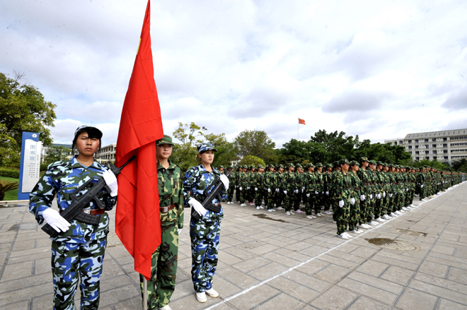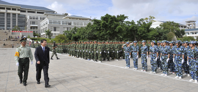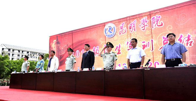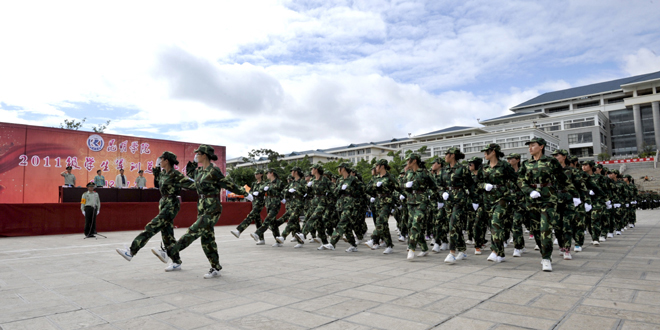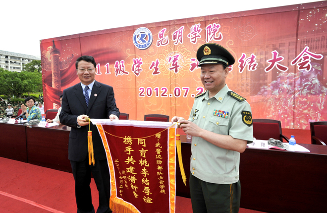 7月20日上午,我校2011学生军训工作总结大会在学校聂耳广场隆重举行。武警边防部队士官学校校长符史导、训练部部长李荣、继续教育处处长孙利辉,我校校长陈世波、副校长李翔、副校长张寿国、副校长熊晶、副校长罗明东出席了大会并在主席台就坐。学校各相关职能部门以及各院(系)领导、辅导员、2011级班主任、军训团教官、2011参训学生共5000余人参加了大会。大会由李翔副校长主持。